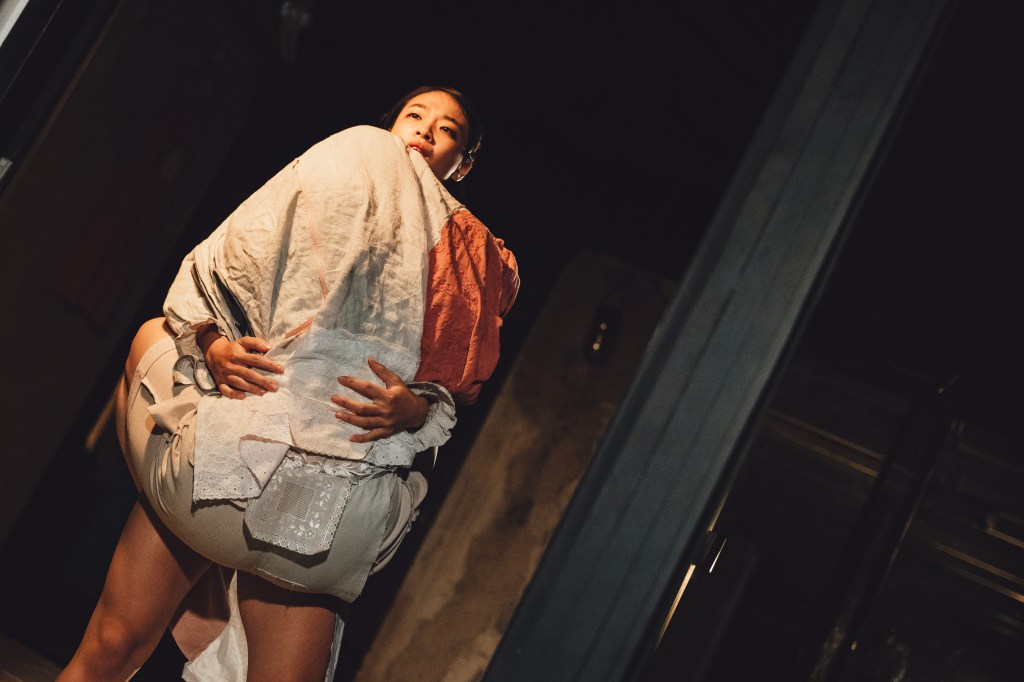 Through simplicity and tranquility, my costume design aims to leave room for performers to dynamically inhabit the space. The mother’s portrayal in gray symbolizes the toll of repetitive housework on her youth and beauty, while the children’s attire draws inspiration from the carnation’s stem, a global symbol of Mother’s Day. Defined by delicate lace, soft silk, modest shirts, bubble sleeves, slits, and children’s saliva towels, the design incorporates elements of traditional Taiwanese kitchen tablecloths as collage material.
