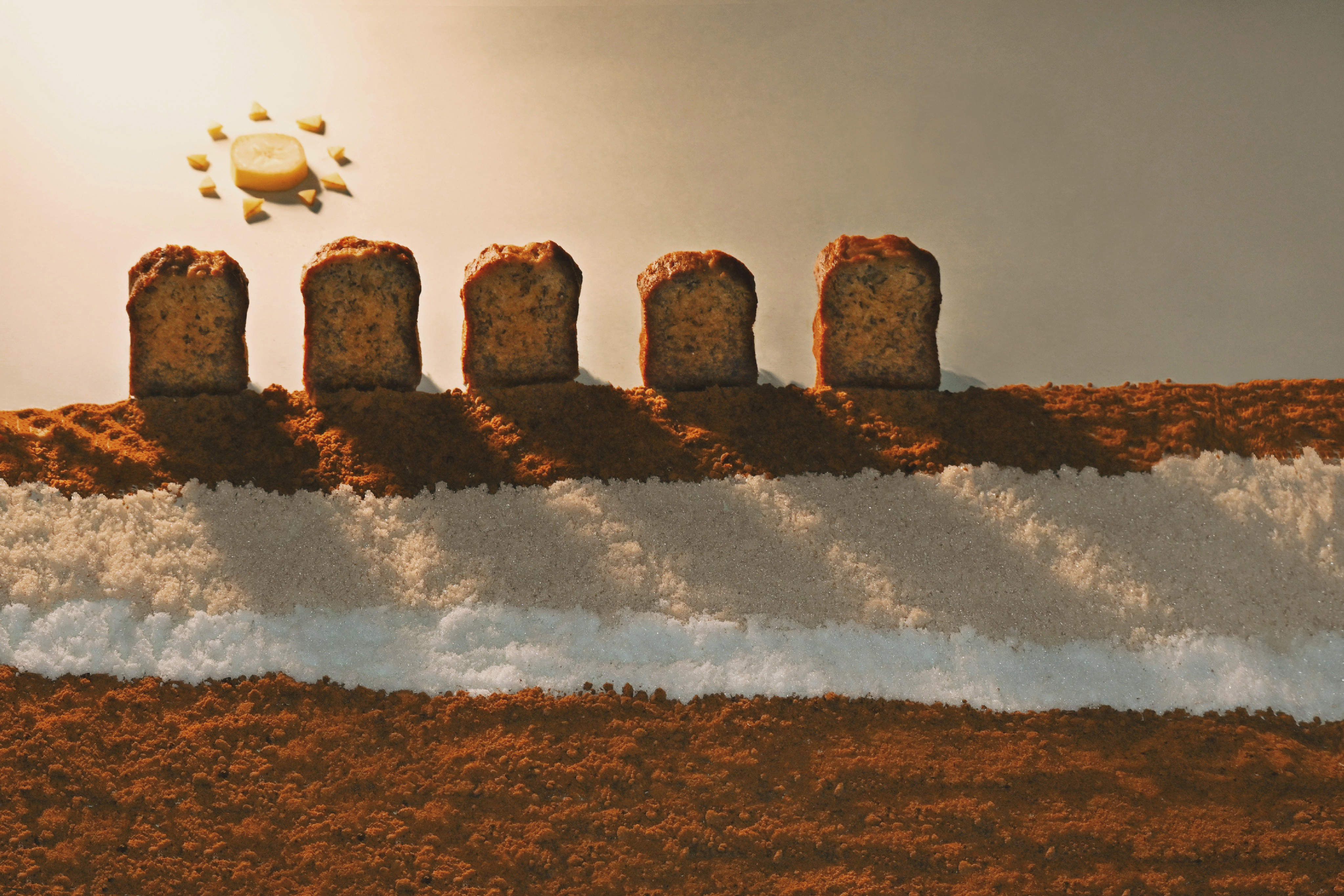 Drawing from still life paintings and illustrations, I decided to aim for warmth, elegance, and simplicity. Each cake flavor is personified and seamlessly integrated into an imaginative setting, evoking a unique sensory experience.